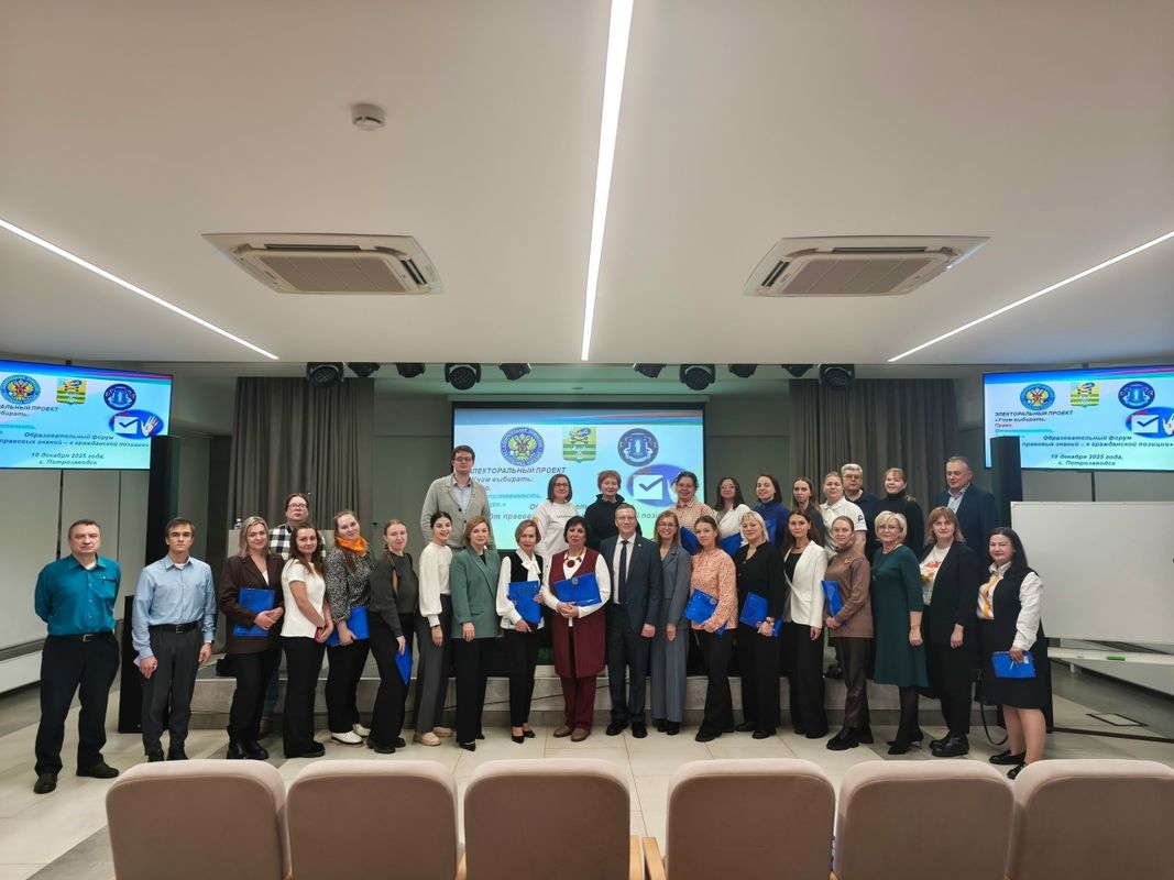 10 декабря в Петрозаводске состоялся масштабный образовательный форум «От правовых знаний – к гражданской позиции», организованный Избирательной комиссией Карелии и Администрацией города. Это событие объединило более 50 учителей обществознания, советников по воспитательной работе и директоров учебных заведений. Анастасия Ивановна, Александр Константинович и Ольга Константиновна стали участниками этого образовательного форума.