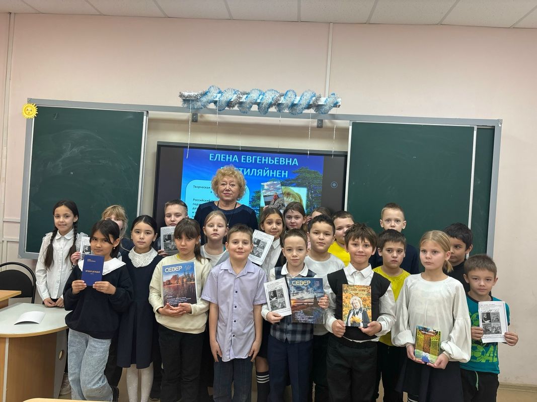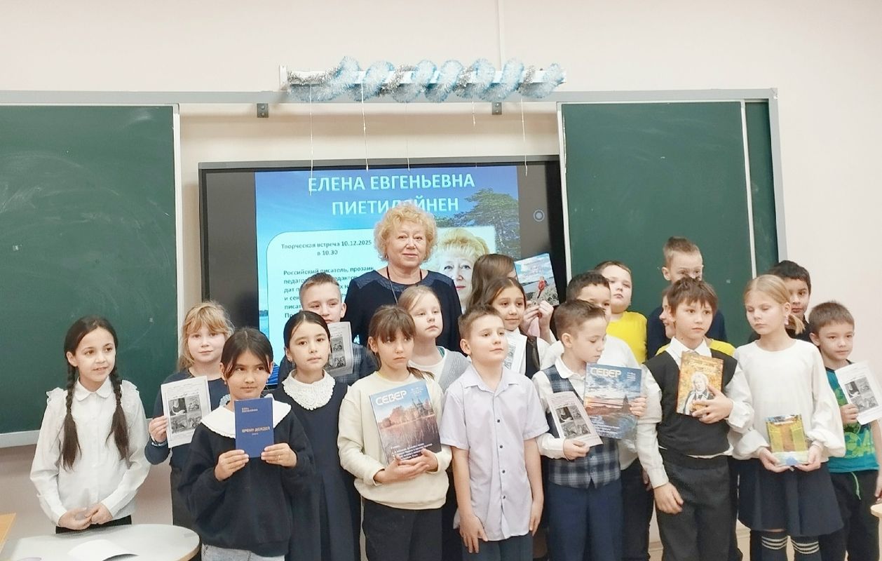 Ученики 3 «А» класса и старшеклассники на встрече познакомились с творчеством Елены Пиетиляйнен, услышали в исполнении автора поэтические строки, посвященные любви, природе, Русскому Северу.