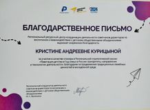 Кристина Андреевна получила БЛАГОДАРСТВЕННОЕ ПИСЬМО от